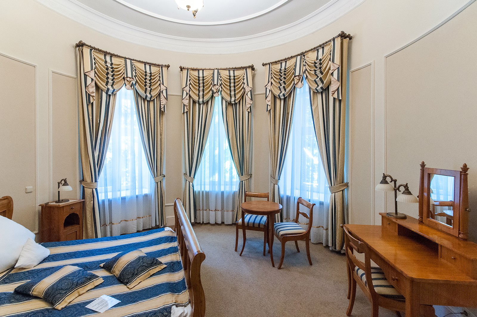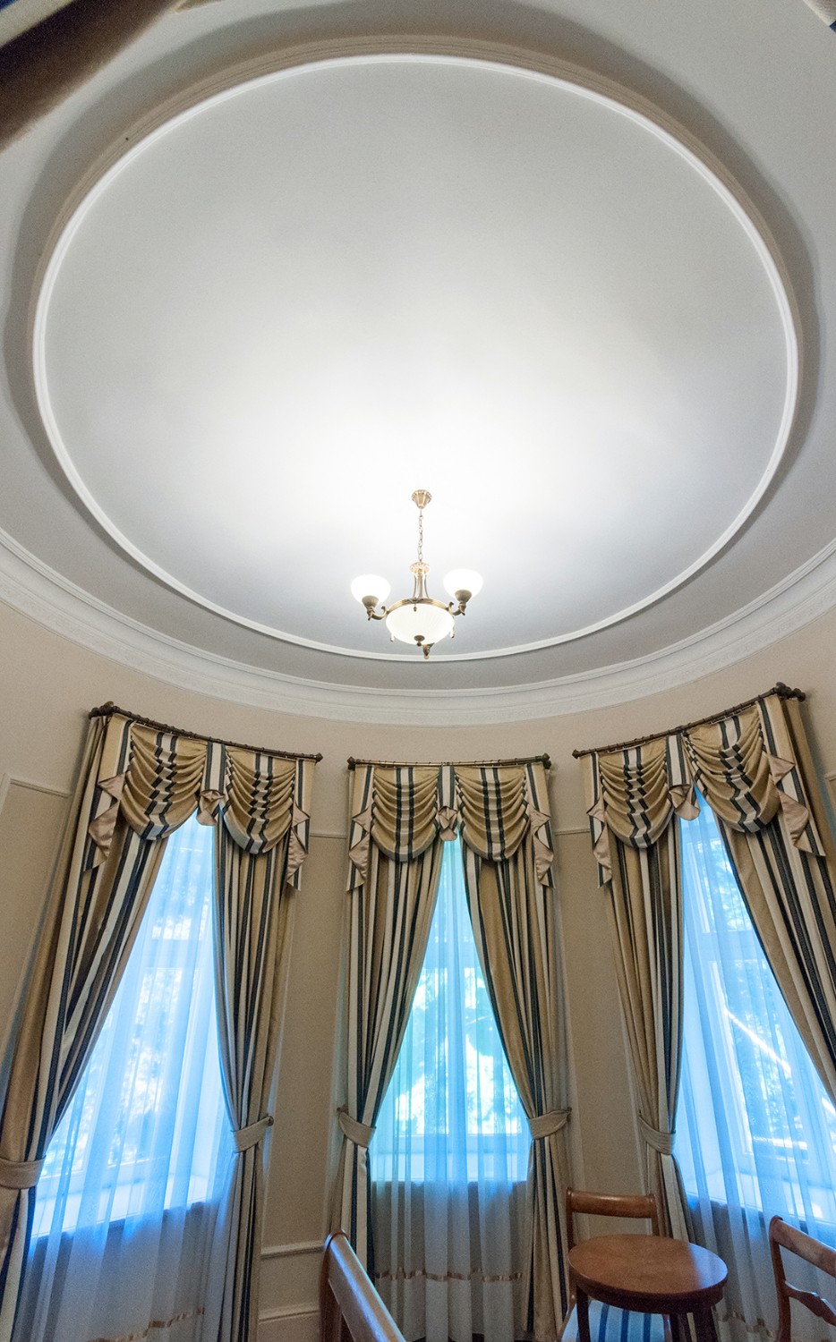 W sali okrągłej przy gabinecie sufit zdobią złote mozaiki o ornamentyce bizantyjskiej. Pomieszczenie wyposażone jest w kredens, szafę, bufet, ławę i fotele, a w gabinecie – stół z 12 ciężkimi, dębowymi krzesłami. To miejsce idealne na kameralną restaurację lub gabinet do podejmowania ważnych decyzji.