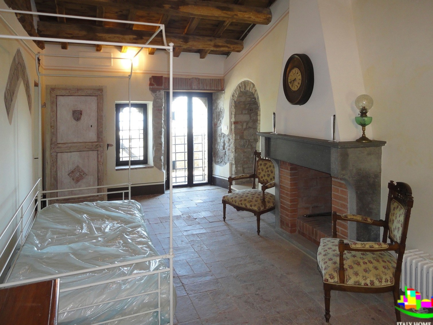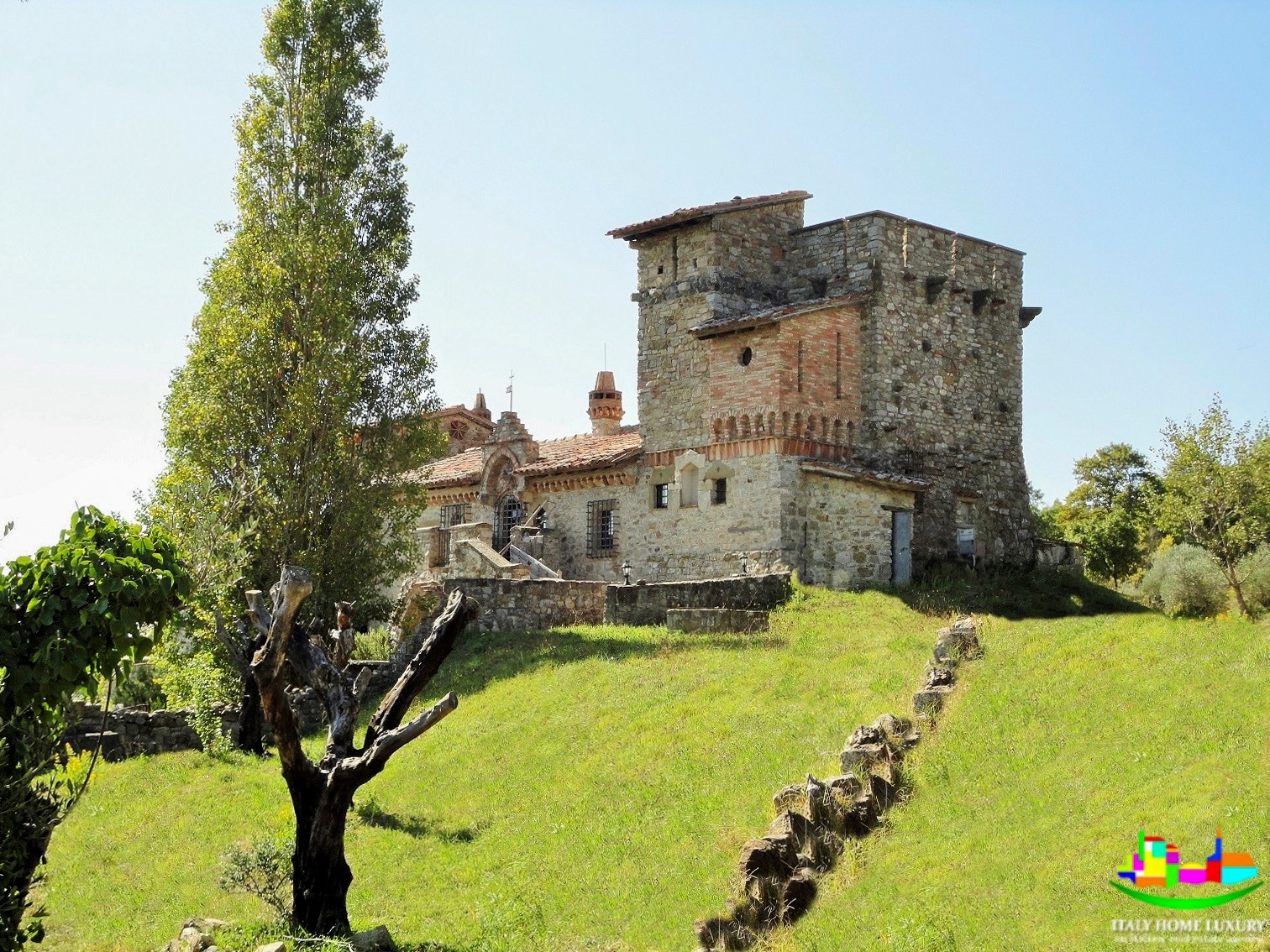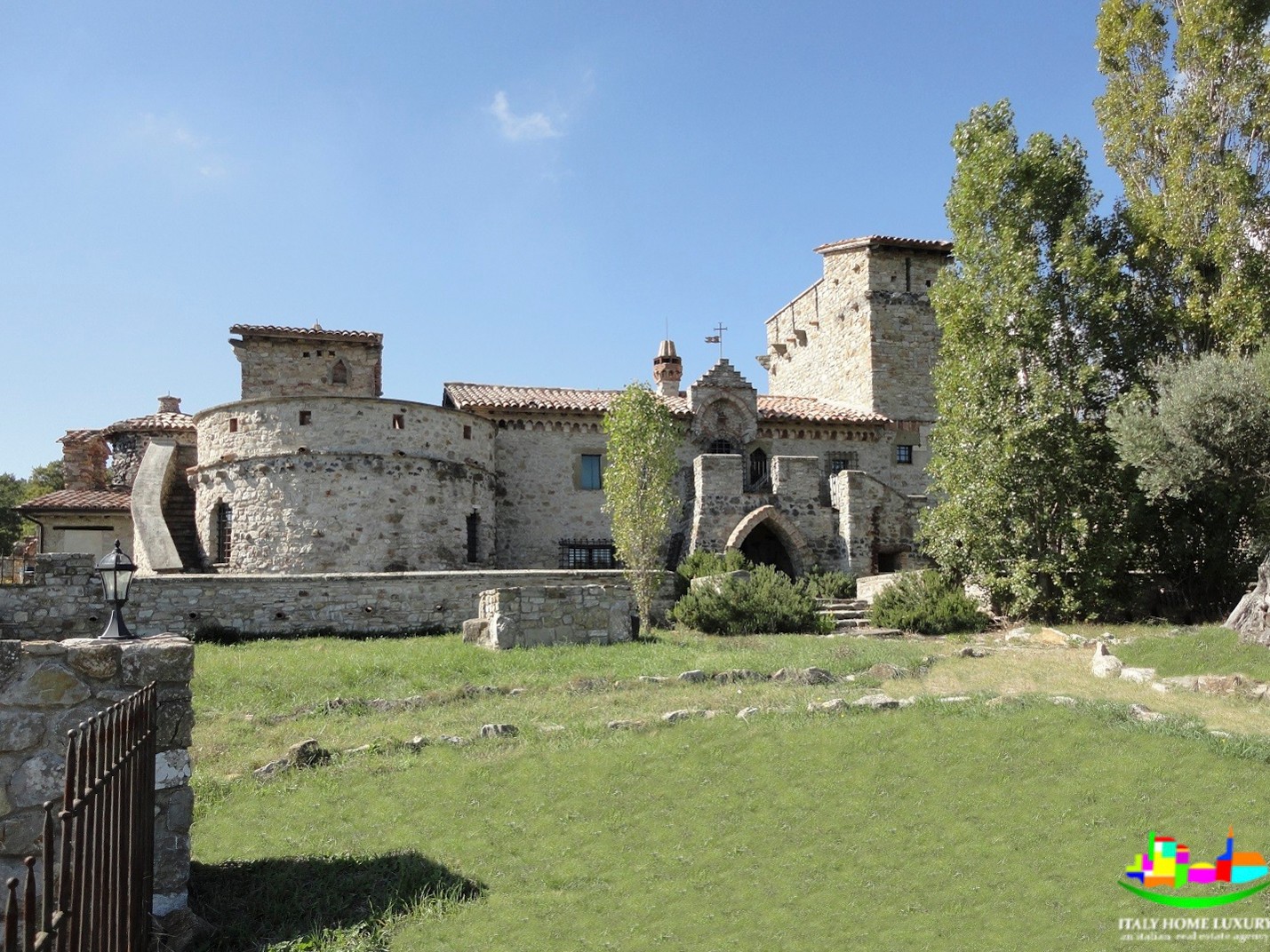 Zamek rozciąga się na posiadłości o powierzchni około 20 hektarów z polami uprawnymi i około 8 hektarami lasów, idealnych do polowania na grzyby i trufle. Budynek ma powierzchnię około 450 metrów kwadratowych i oferuje trzy sypialnie z łazienkami oraz oddzielne mieszkanie. Na parterze znajduje się część wspólna z dwoma salonami, łazienką, kuchnią i holem wejściowym. Kuchnia wyposażona jest w piec opalany drewnem i piec do pizzy.