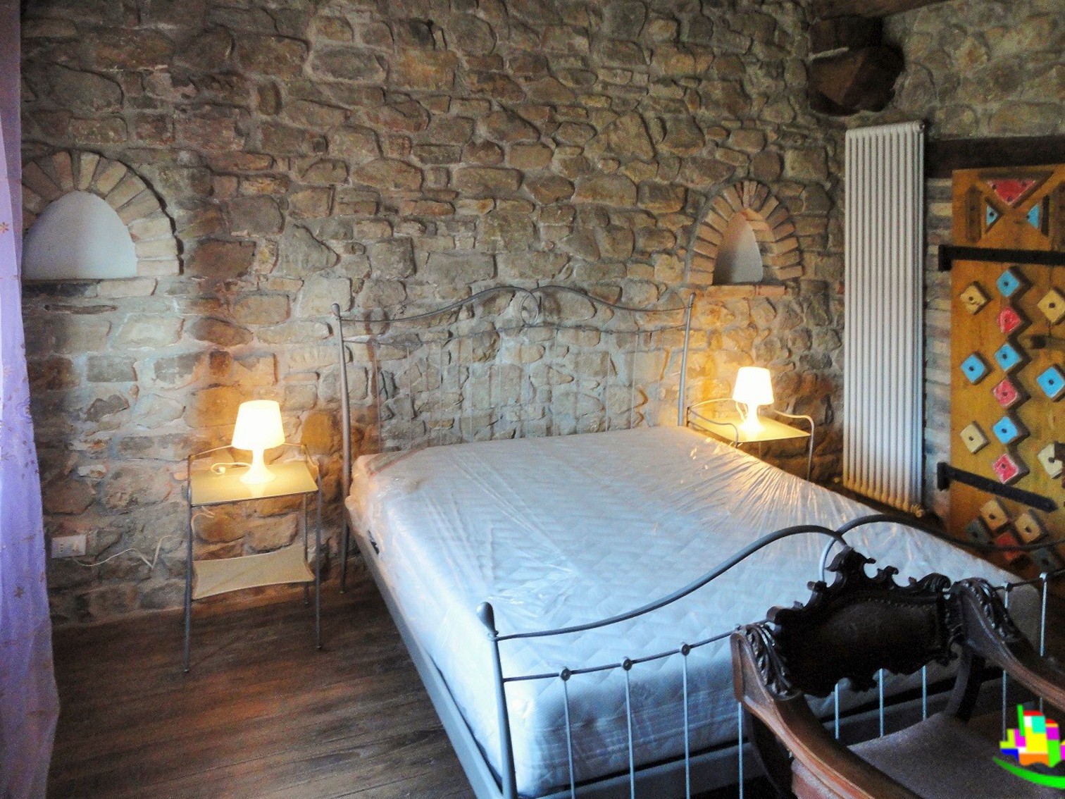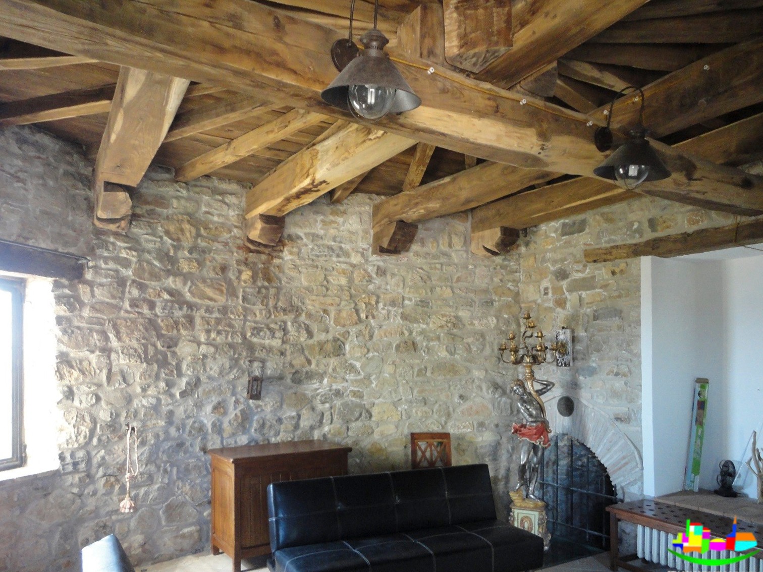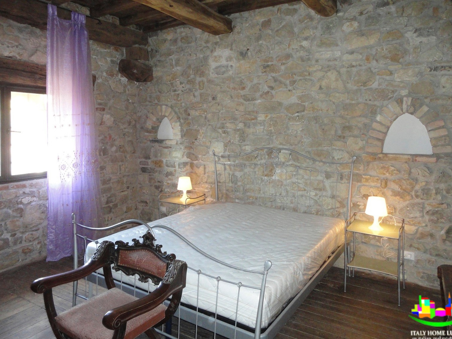Zamek rozciąga się na posiadłości o powierzchni około 20 hektarów z polami uprawnymi i około 8 hektarami lasów, idealnych do polowania na grzyby i trufle. Budynek ma powierzchnię około 450 metrów kwadratowych i oferuje trzy sypialnie z łazienkami oraz oddzielne mieszkanie. Na parterze znajduje się część wspólna z dwoma salonami, łazienką, kuchnią i holem wejściowym. Kuchnia wyposażona jest w piec opalany drewnem i piec do pizzy.
