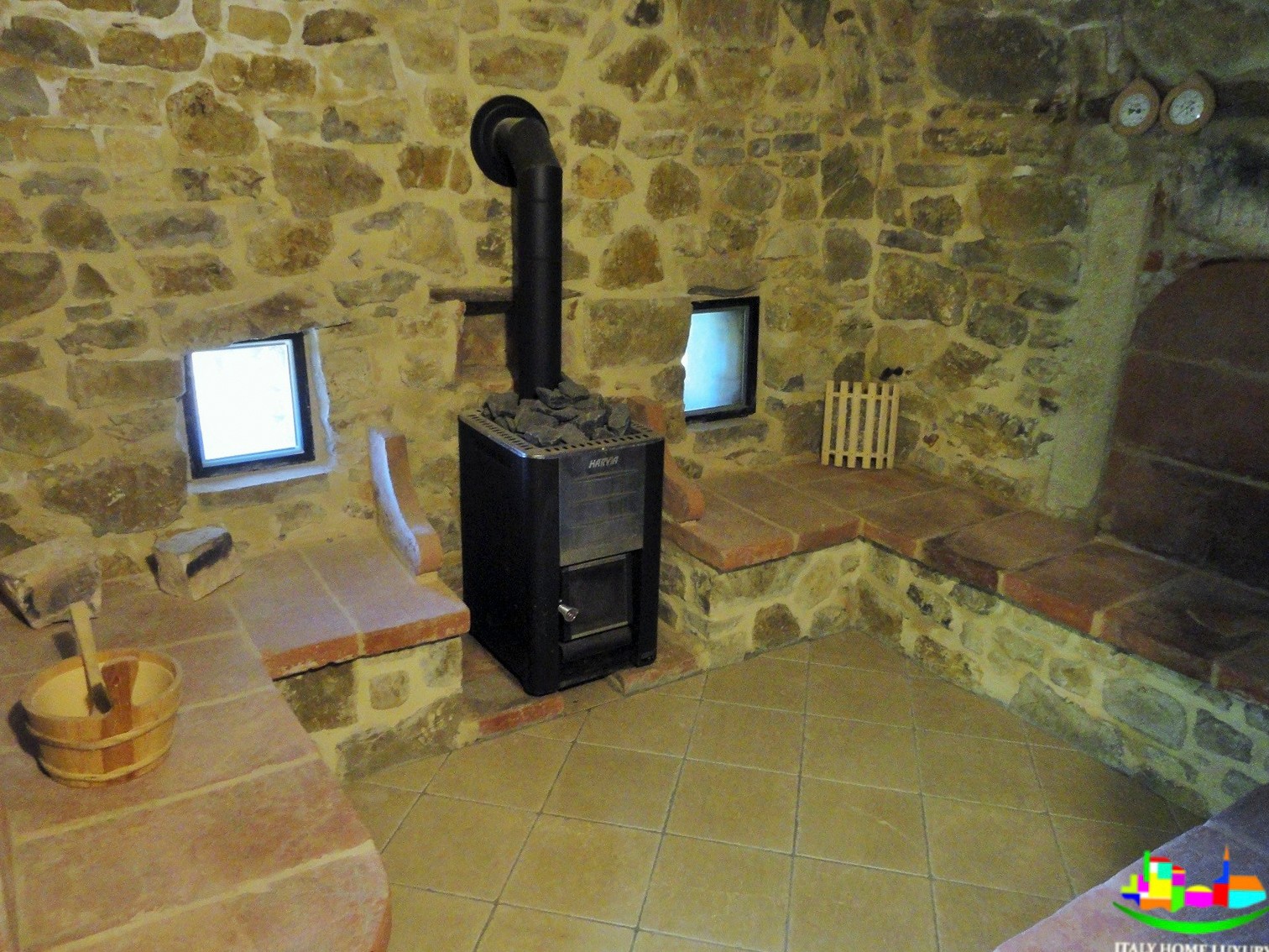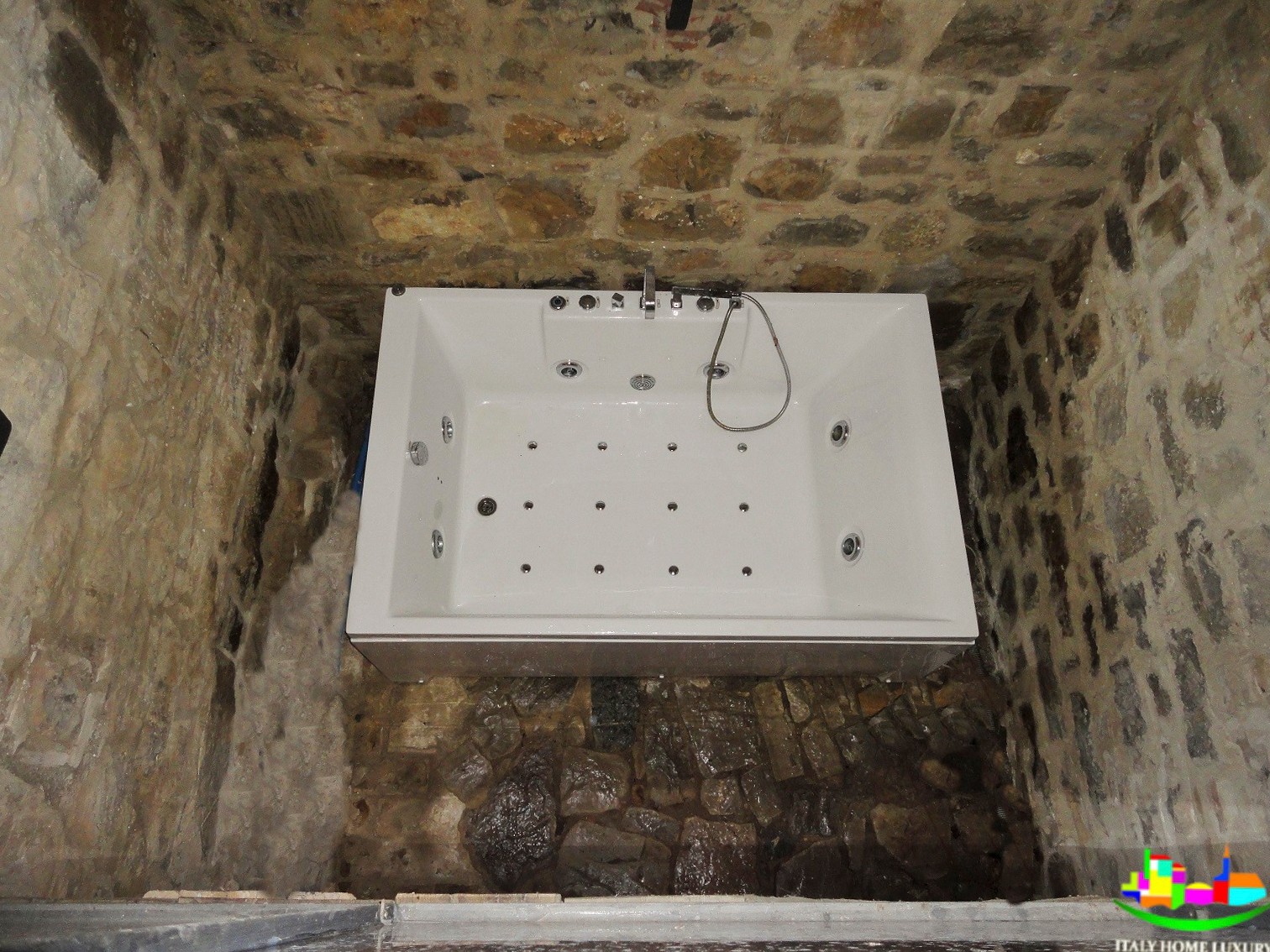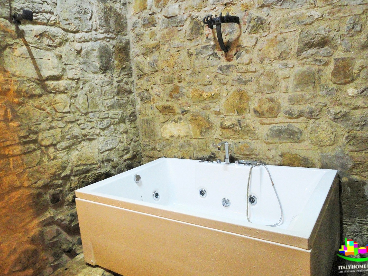 Na zewnątrz, z widokiem na Todi i okoliczne góry, zainstalowano dużą wannę z hydromasażem z miejscami siedzącymi dla 7 osób.