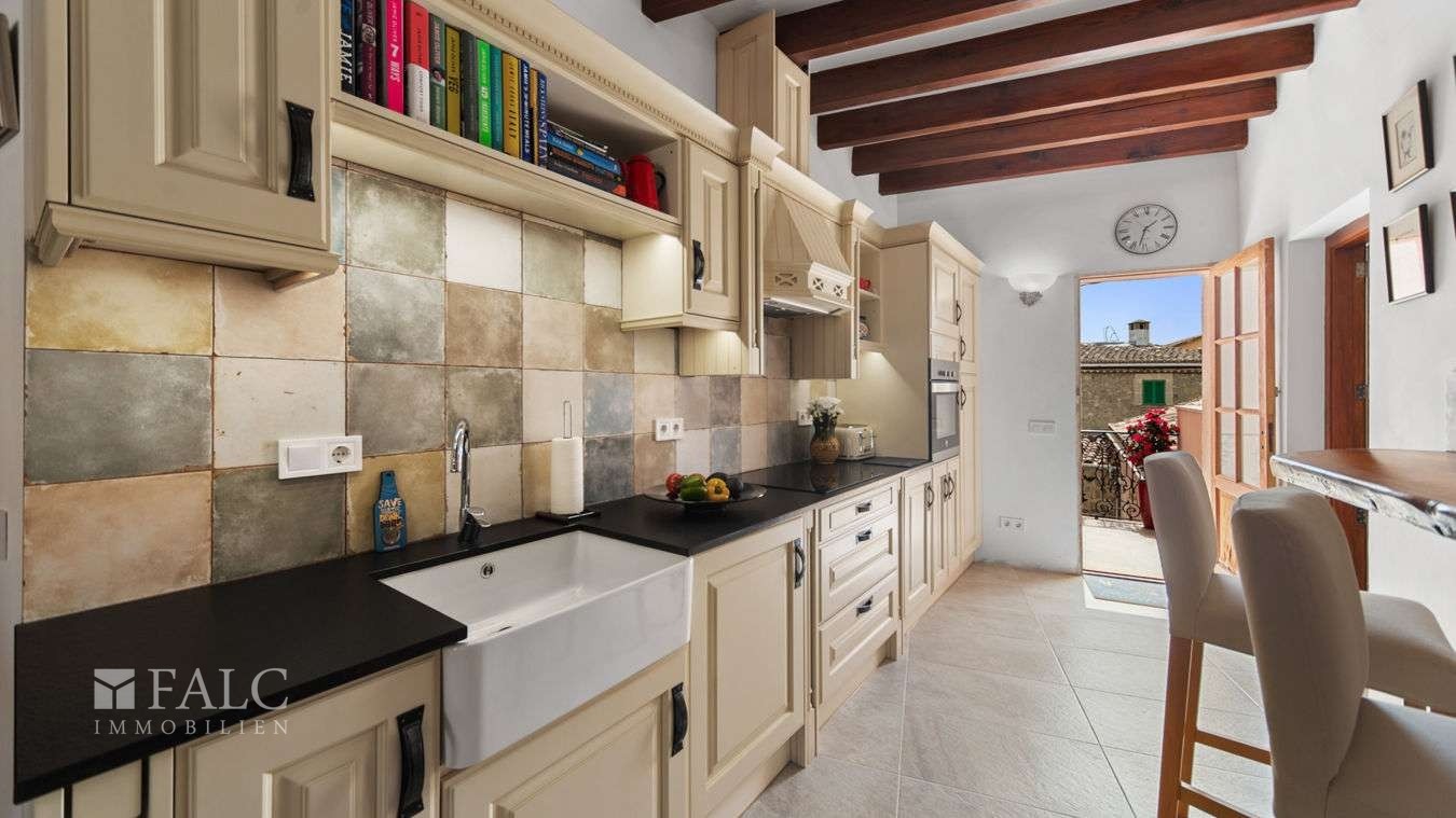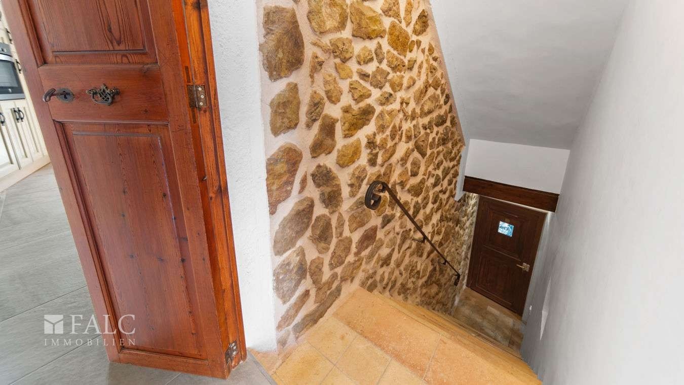 Andra våningen består av en ljus studio med vardags- och matplats, sovdel, kök och badrum. Härifrån finns tillgång till en terrass med en fantastisk utsikt över bergen och den traditionella mallorkinska byn.